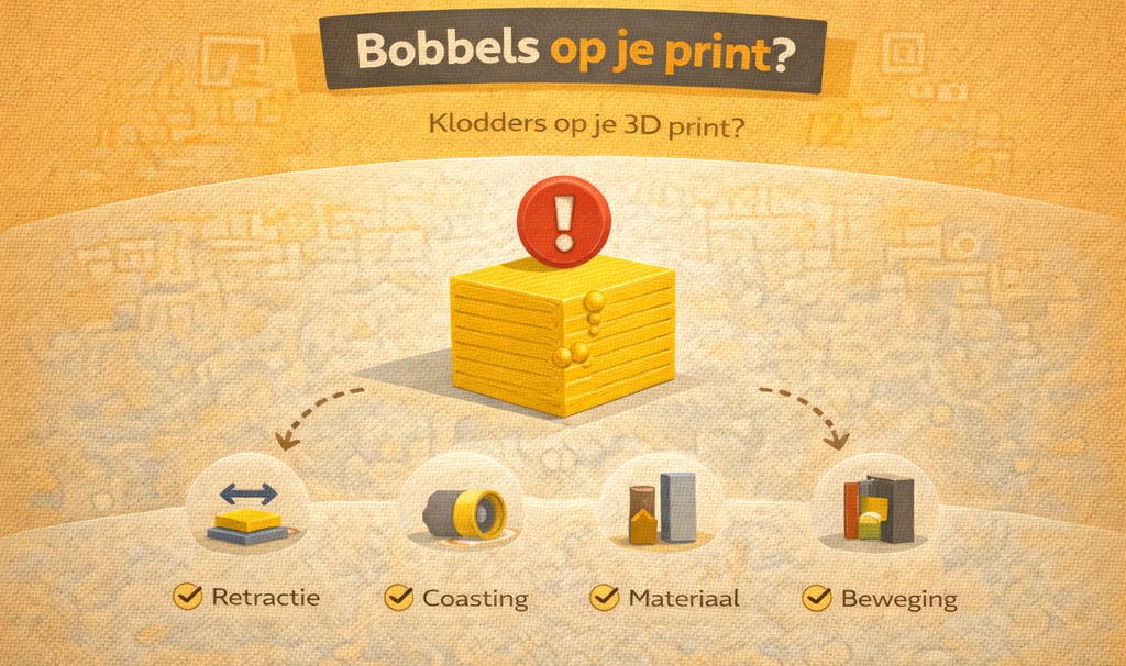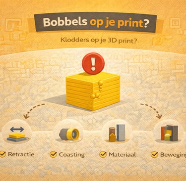 Last van bobbels of bulten op je 3D print? Ontdek de oorzaken van blobs en zits en hoe je dit oplost voor een strak resultaat.