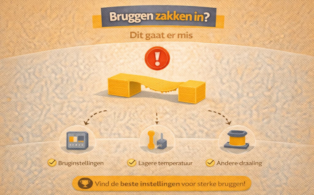 Zakken bruggen in je 3D print door? Ontdek de oorzaken en leer hoe je dit oplost voor strakke en sterke prints.