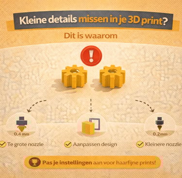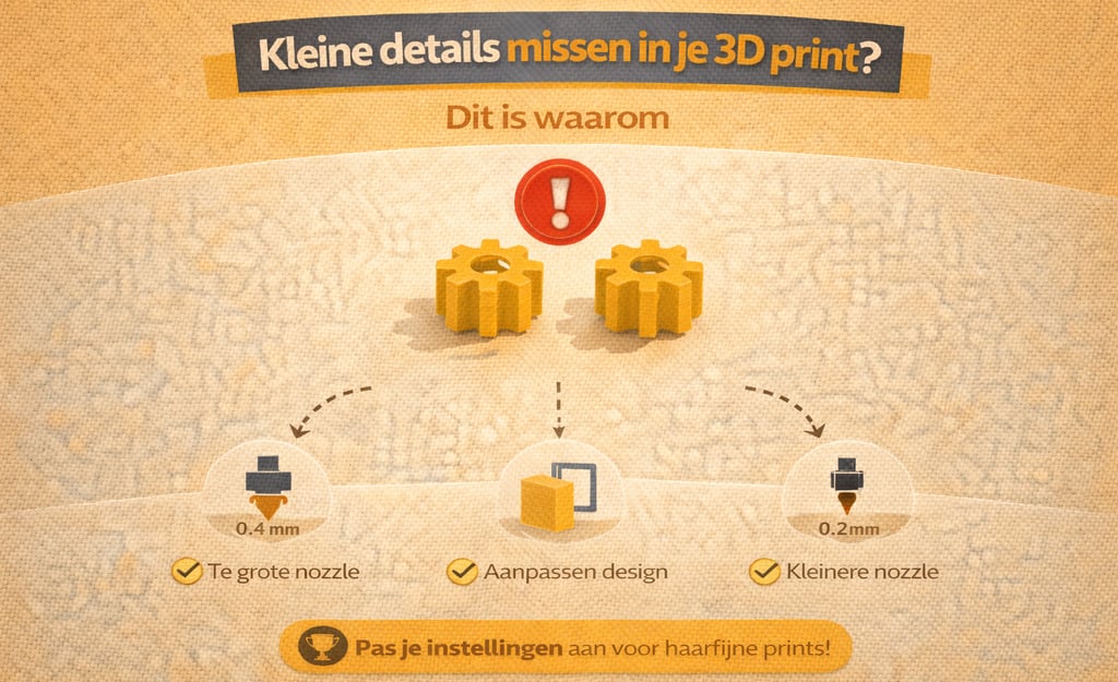 Mist je 3D print kleine details? Ontdek waarom dit gebeurt en hoe je dit oplost met de juiste instellingen of nozzle.