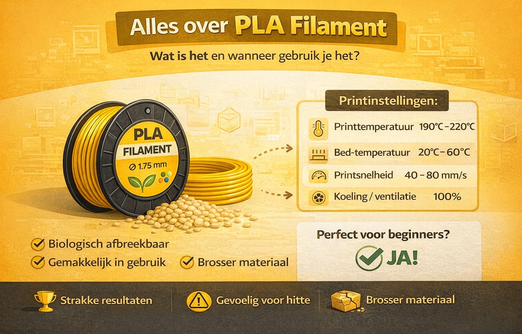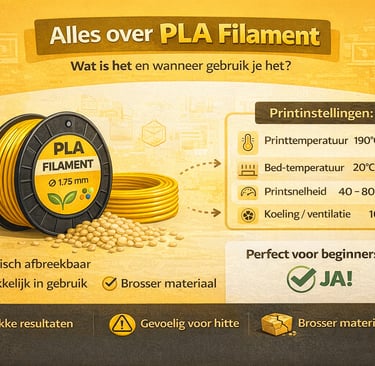 Wat is PLA filament en waarom is het zo populair? Ontdek de voordelen, nadelen en beste instellingen voor 3D printen met PLA. Perfect voor beginners.
