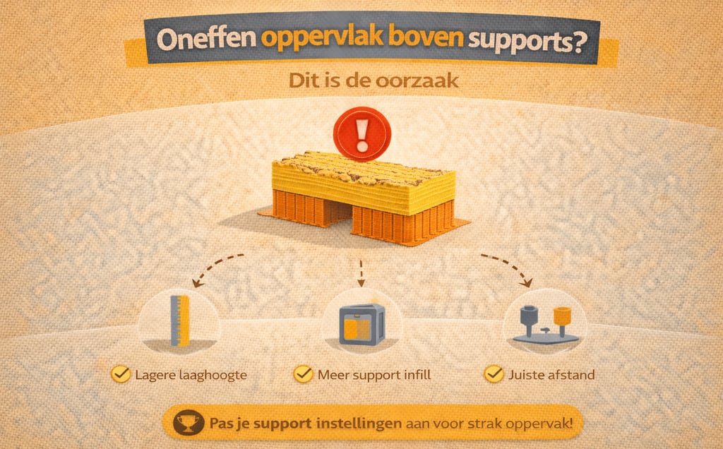Is je 3D print ruw boven support materiaal? Ontdek de oorzaken en hoe je dit oplost voor een strak resultaat.