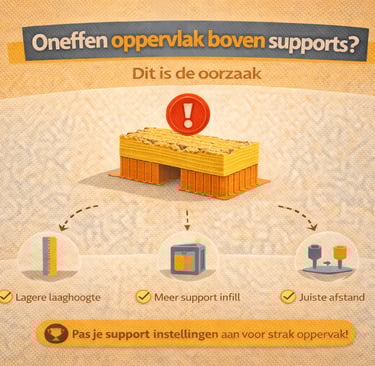 Een ruw oppervlak boven supports ontstaat door verkeerde instellingen in je slicer.