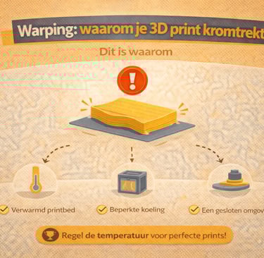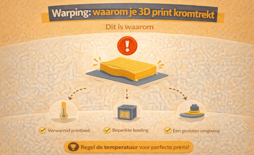 Trekken de hoeken van je 3D print omhoog? Ontdek de oorzaken van warping en hoe je dit voorkomt voor een perfect resultaat.